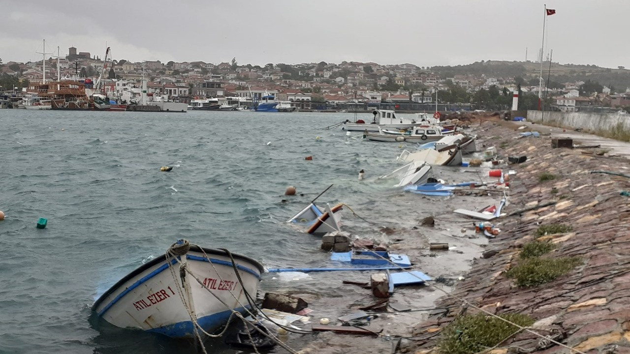 Ayvalık'ta şiddetli fırtına: Tekneler battı, çatılar uçtu, ağaçlar devrildi