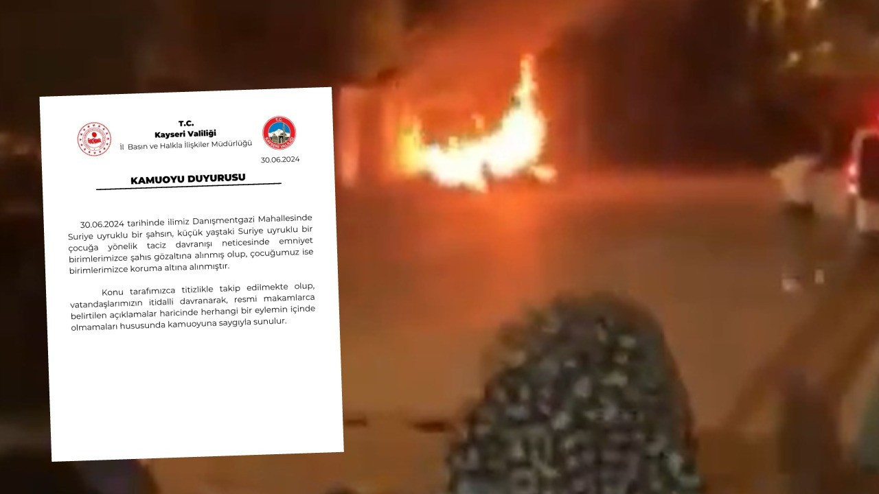 Kayseri Suriye olayı nedir? Son dakika... Kayseri'nin Danışmentgazi ilçesinde yaşanan tecavüz ve taciz olayından sonra ortalık savaş alanına döndü. Halk sokağa çıkarak tepki gösterdi. Yangın görüntüleri bölgeden geliyor. Ayrıca araçlarda ters çevrildi. Peki Suriye Kayseri olayı nedir, işin aslı belli oldu mu? İşte Kayseri Valiliği'nin açıklaması...