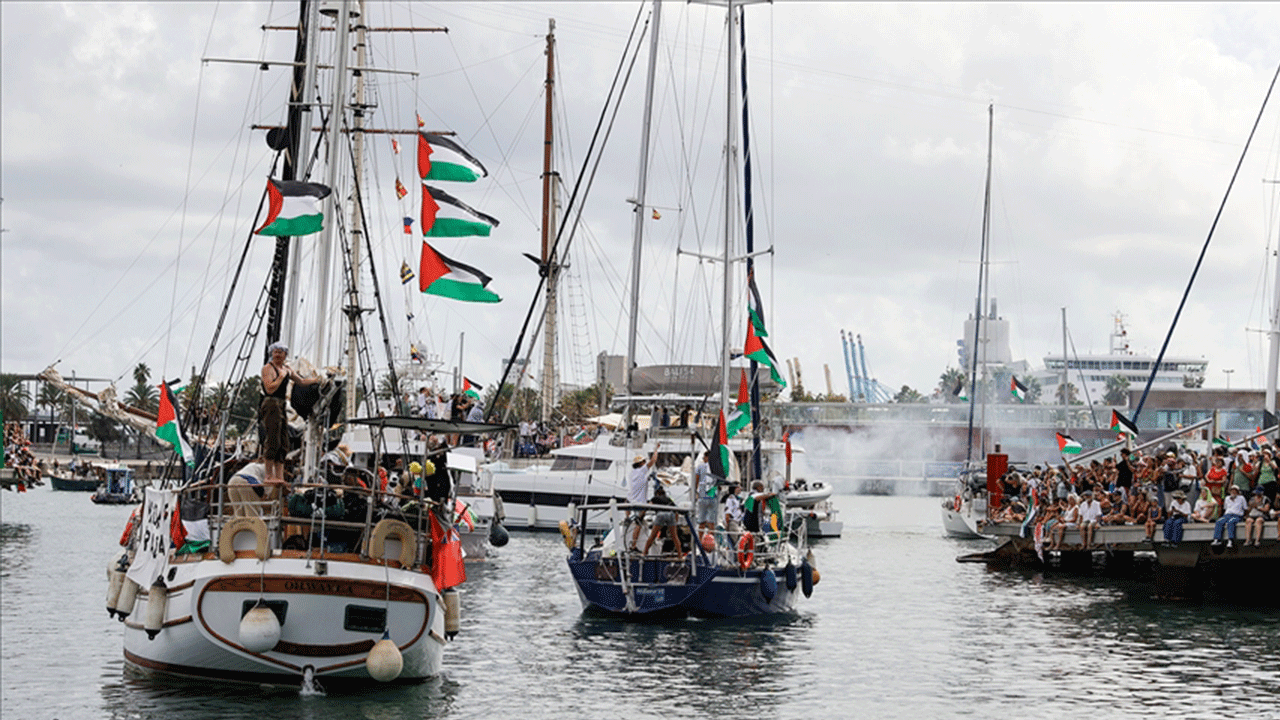 Filistin ile dayanışma ve İsrail’in ablukasını kırmak amacıyla İspanya’nın Barselona kentinden Gazze’ye yola çıkan tekneler, dün kötü hava koşulları nedeniyle geri dönmüştü. Ancak tekneler bu akşam yeniden Gazze’ye doğru yelken açtı.