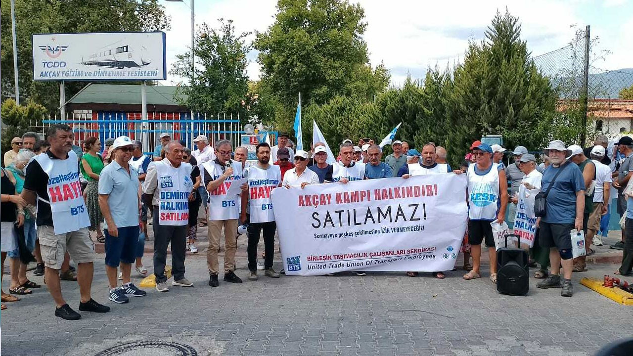 Birleşik Taşımacılık Çalışanları Sendikası (BTS), TCDD Akçay Eğitim ve Dinlenme Tesisi'nin satışa çıkarılmasını protesto etti.
