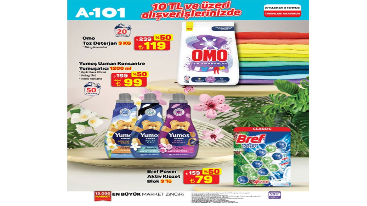 A101 10 TL VE ÜZERİ ALIŞVERİŞLERİNİZDE GEÇERLİ TEMİZLİK ÜRÜNLERİNDE %50 İNDİRİM