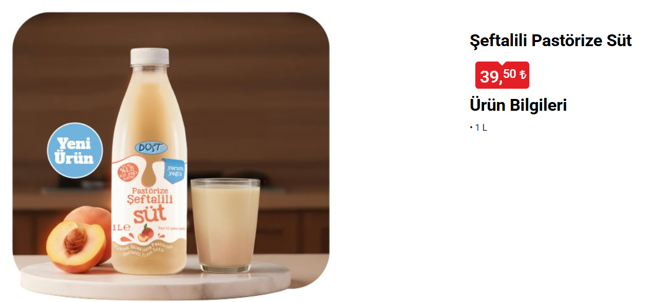DOST ŞEFTALİLİ PASTÖRİZE SÜT 1 L