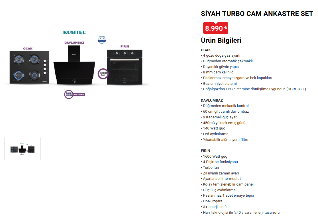 KUMTEL BEYAZ TURBO CAM ANKASTRE SET