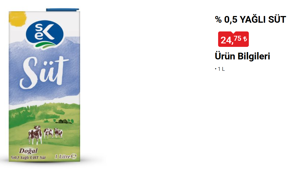 SEK %0,5 YAĞLI SÜT 1 L