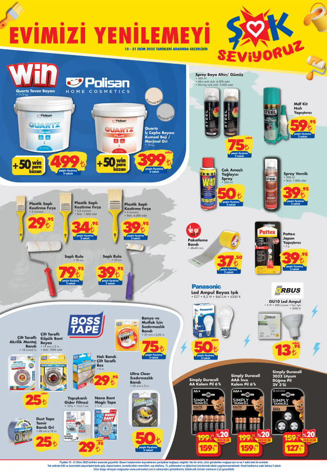 ŞOK market ekim ayı indirimlerine devam ediyor. ŞOK market 15-21 Ekim 2025 kataloğu indirimli ürünleri fiyat listesini sizler için hazırladık. ŞOK markette bugün onlarca indirimli ürün raflarda yerlerini aldı. ŞOK markette bugün hangi ürünlerde indirim var? ŞOK markete bugün hangi ürünler geliyor? İşte ŞOK market 15-21 Ekim 2025 aktüel ürünler kataloğu...