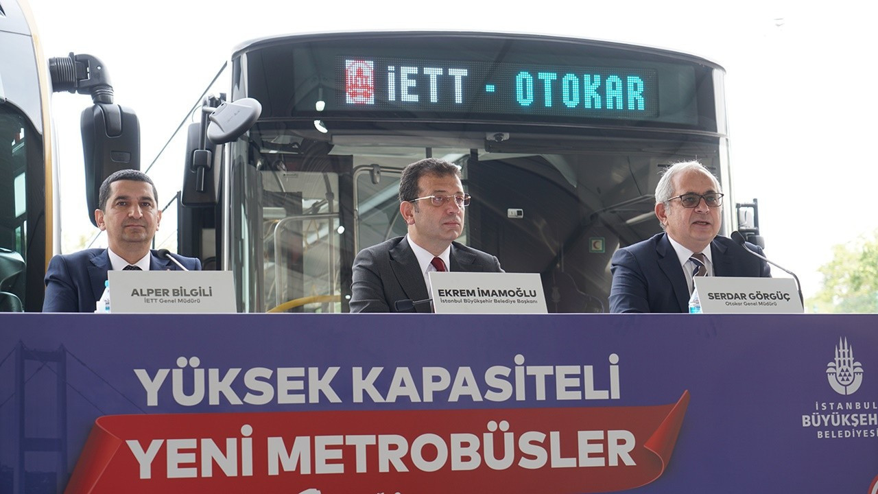 İstanbulluları taşıyacak yeni metrobüsler için İETT Metrobüs Garajı'nda gerçekleşen imza töreni İstanbul Büyükşehir Belediye Başkanı Ekrem İmamoğlu, İETT Genel Müdürü Alper Bilgili ve Otokar Genel Müdürü Serdar Görgüç'ün katılımıyla gerçekleşti.